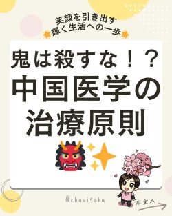 中国医学には、いくつもの治療の原則があります😊💡その大きな目的は「陰陽のバランスを整えること」⚖️🌿少し変わった視点では、「鬼は殺すな👹❌」という原則もあるんです!👹鬼=邪!?中国医学の考え方中国医学では「鬼=邪(じゃ)」を意味します👀✨西...