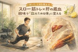 ゆっくり動くほど、体は血をためられるこんにちは。整体師のたつおです。現場で20年以上、体を触ってきましたが、最近あらためて実感しているのが「ゆっくり動く人ほど、体が変わりやすい」ということです。今回は、スロートレーニングと中医学の「肝の蔵血...