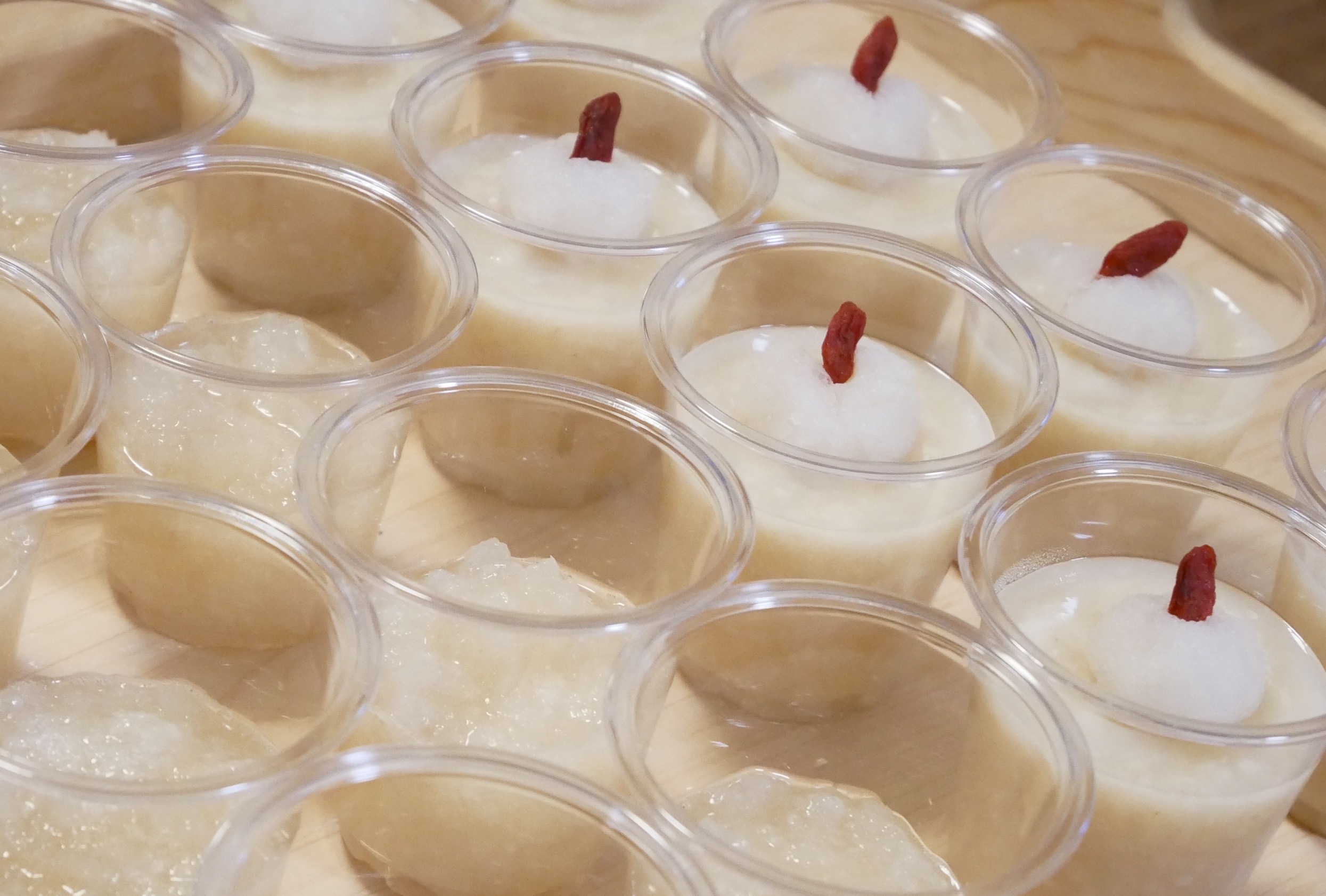 ②大根おろし汁と甘酒のゼリー:大根おろし汁、玄米甘酒、葛粉、粉寒天を使ったゼリーです。清熱したいけれども甘いものを食べたい!という時などに。甘酒と大根汁で胃を労りながら、大根おろしと寒天で熱を降ろしてくれます。